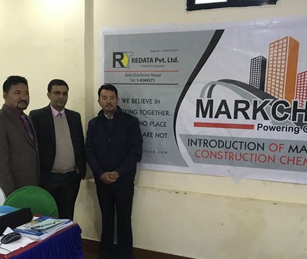 Company exclusively represents and is the sole distributor of the chemical brand “MARKCHEM” in Nepal. Offering a range of chemical products under the “MARKCHEM” brand, including admixtures and waterproofing solutions, is a great way to diversify the company’s offerings and cater to different needs within the concrete industry. Being a leading supplier and distributor of admixture and waterproofing chemicals in Nepal indicates that Redata Pvt. Ltd. has established a significant presence in the market and is capable of meeting the demands of its clients.